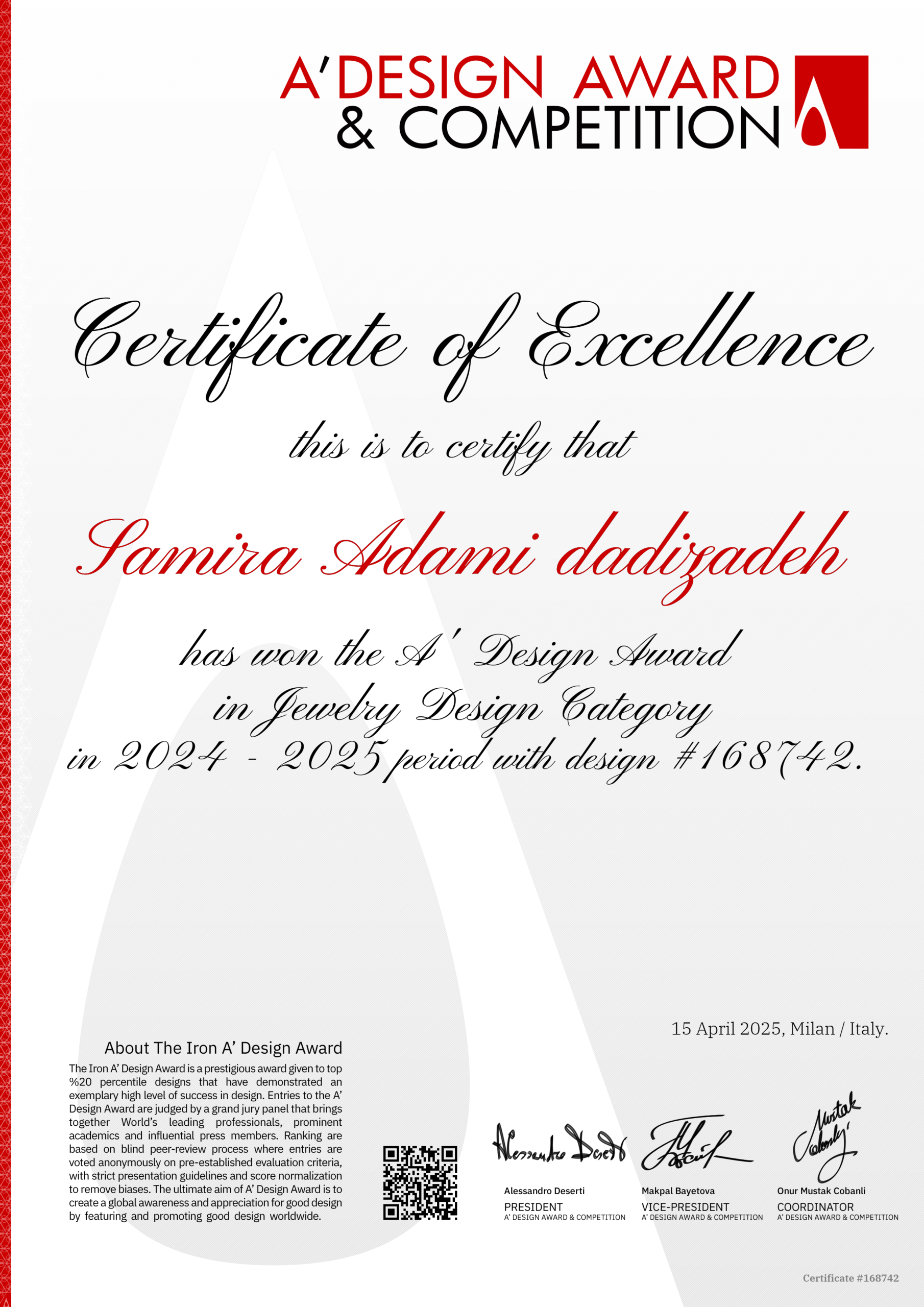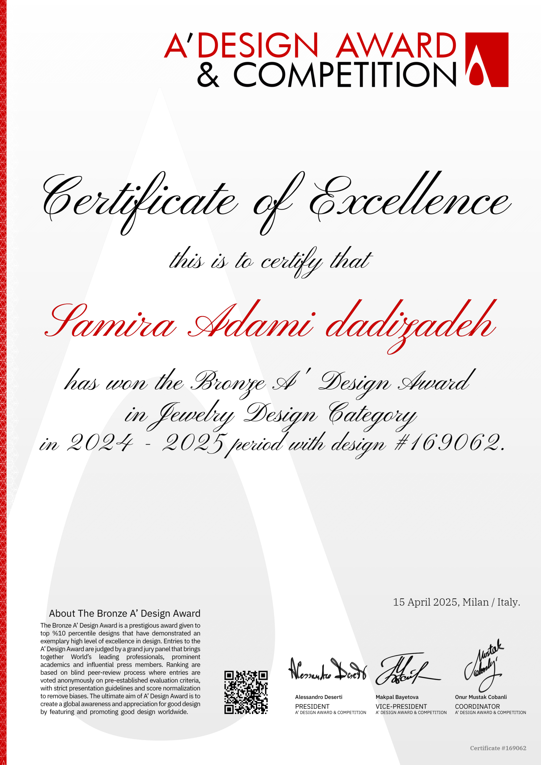 در این گالری، مجموعهای از آثار طراحیشده توسط سمیرا آدمی را مشاهده میکنید که شامل طرحهای ارائهشده در رقابتهای بینالمللی است.